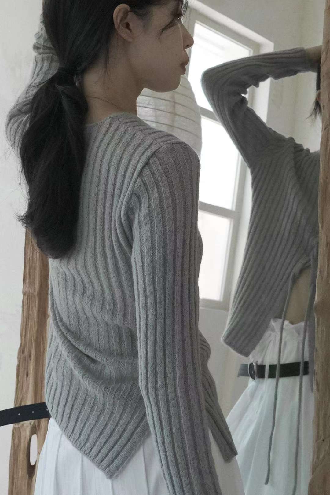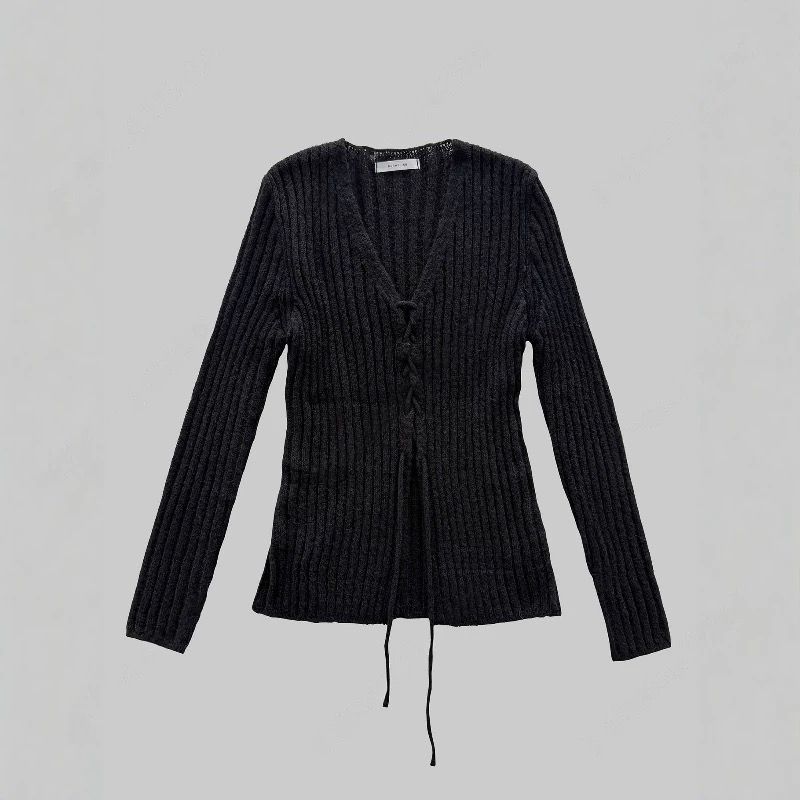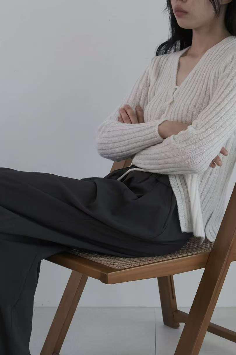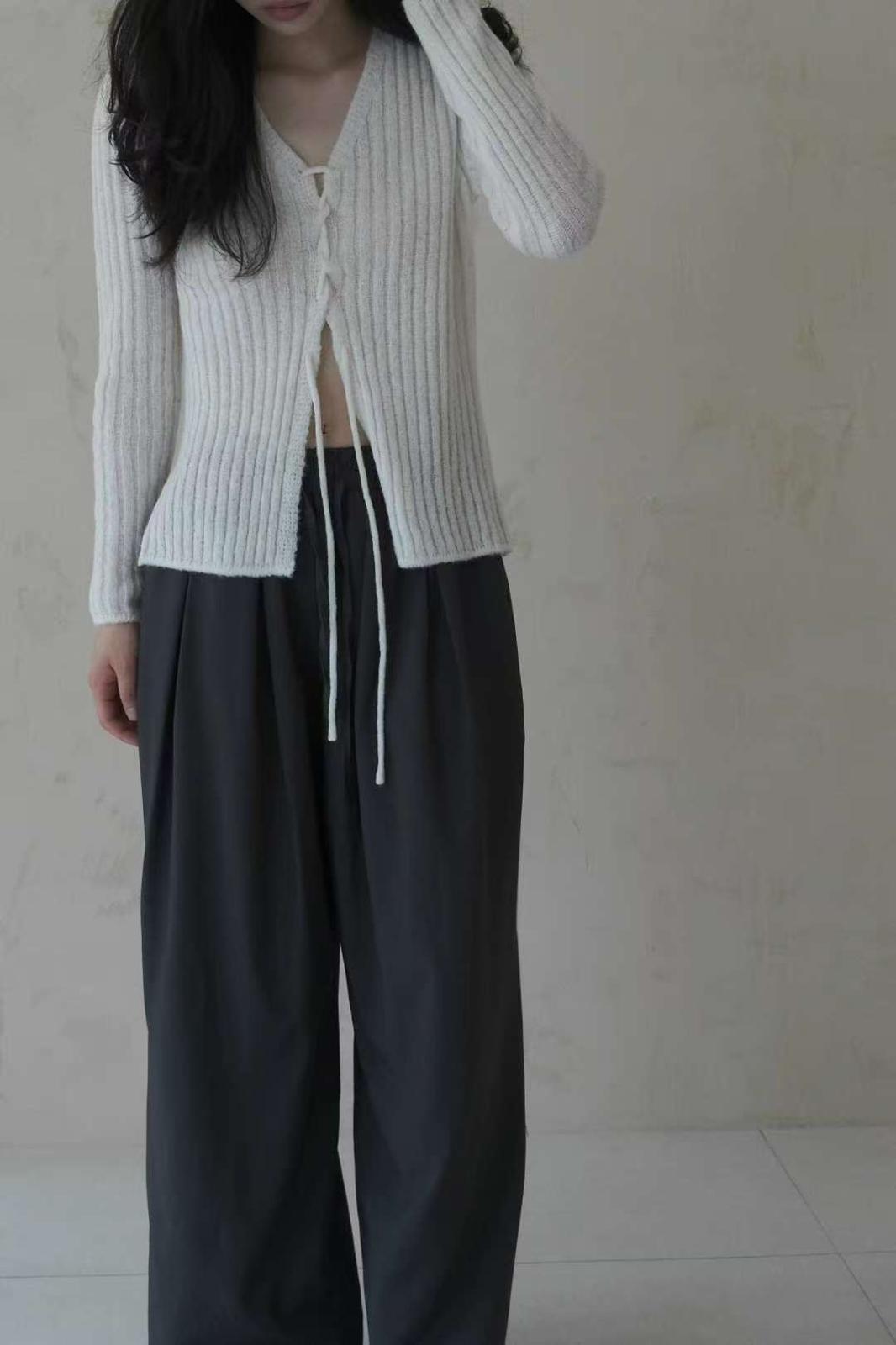 交叉繫帶針織開衫長袖 【KT044】