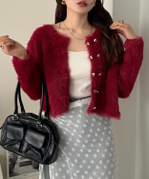 𝙹𝙺𝟶𝟶𝟺 心形鈕扣毛毛外套 🇯🇵𝚙𝚛𝚘𝚍𝚞𝚌𝚝 𝚘𝚏 𝙹𝚊𝚙𝚊𝚗 正面心形金屬對扣 +蓬鬆感十足面料 成個人睇落去 有種溫柔小千金嘅感覺👸🏻 極致手感: 手感勁柔軟毛毛面料 著上身好似被毛毛熊包圍咁舒服 保暖得嚟又唔會顯得臃腫 精緻心形扣: 金屬心形扣設計增加咗一份甜美感 細節控必入! 微短版剪裁: 短版設計可以修飾身型比例 無論襯牛仔褲定係長裙 都可以營造出長腿效果💕 💁🏻♀️𝙼𝚘𝚍𝚎𝚕 𝚍𝚎𝚝𝚊𝚒𝚕𝚜 𝟷𝟼𝟹𝚌𝚖 𝙵𝚛𝚎𝚎 𝚂𝚒𝚣𝚎 衣服尺寸: 胸圍𝟺𝟻𝚌𝚖 肩寬𝟺𝟸𝚌𝚖 衣長𝟺𝟸𝚌𝚖