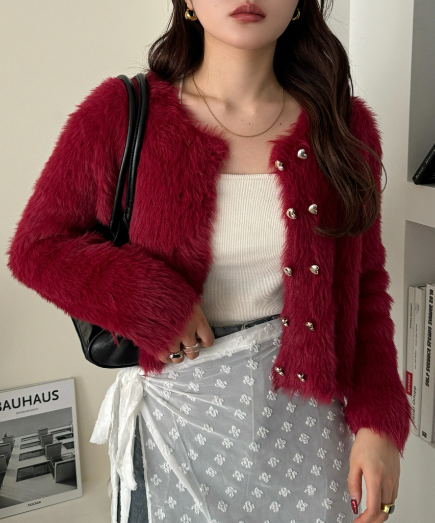 心形鈕扣毛毛外套【JK004】
