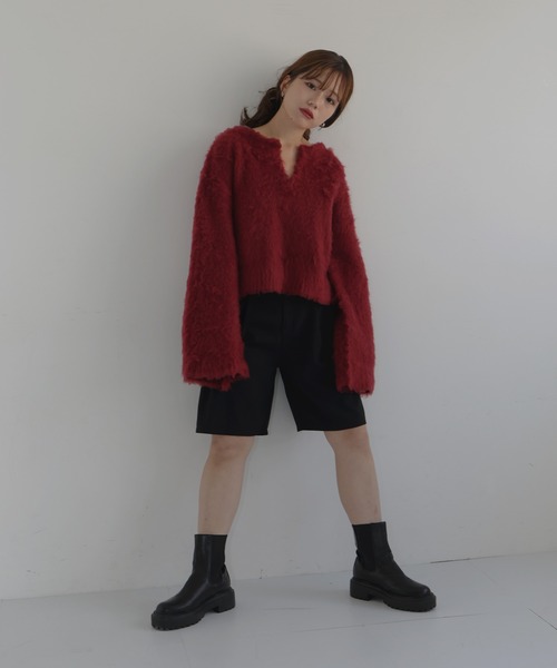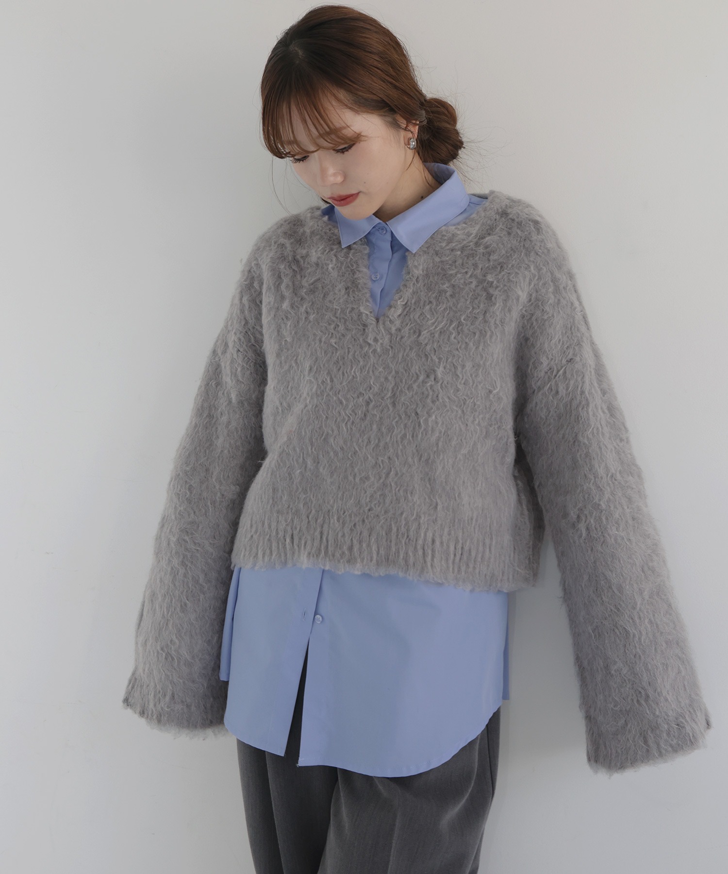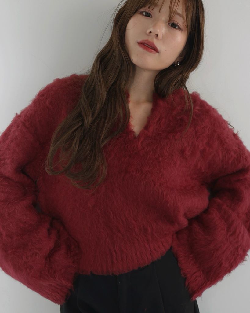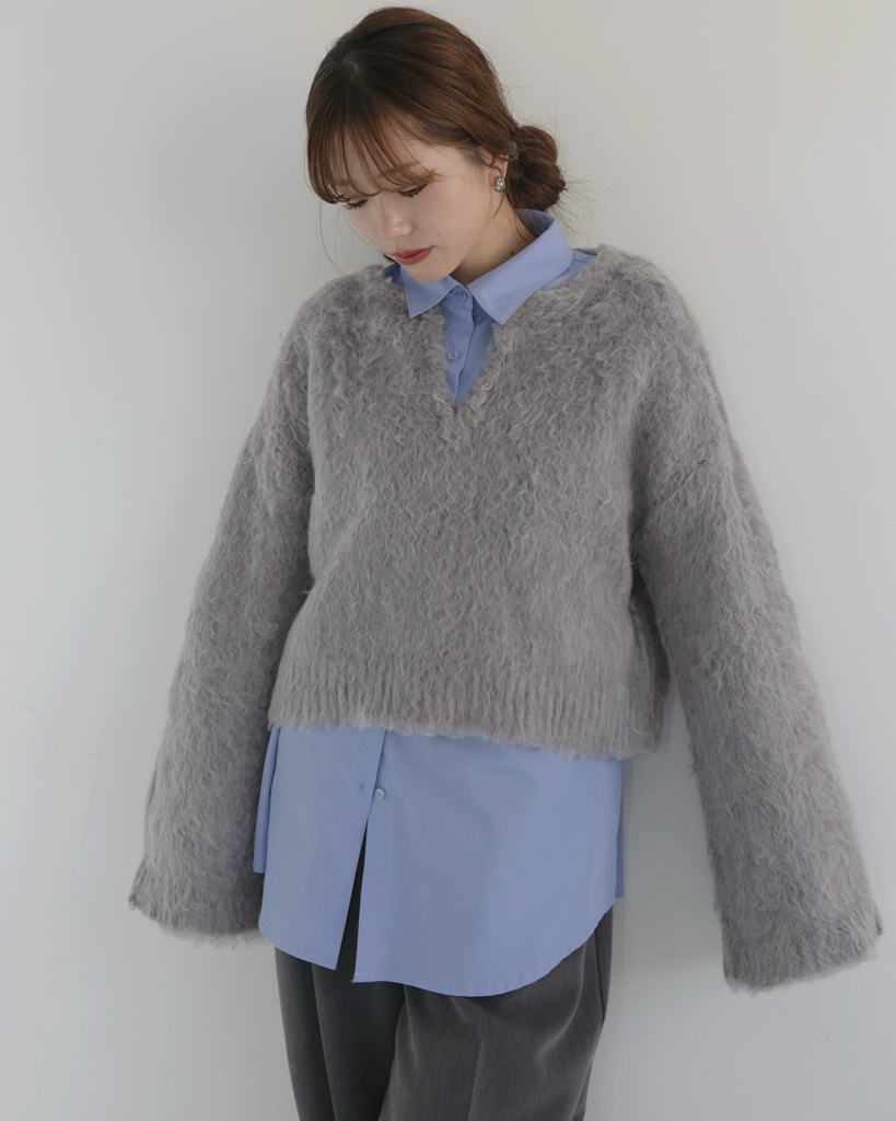 慵懶感 V領長毛針織衫【JT017】