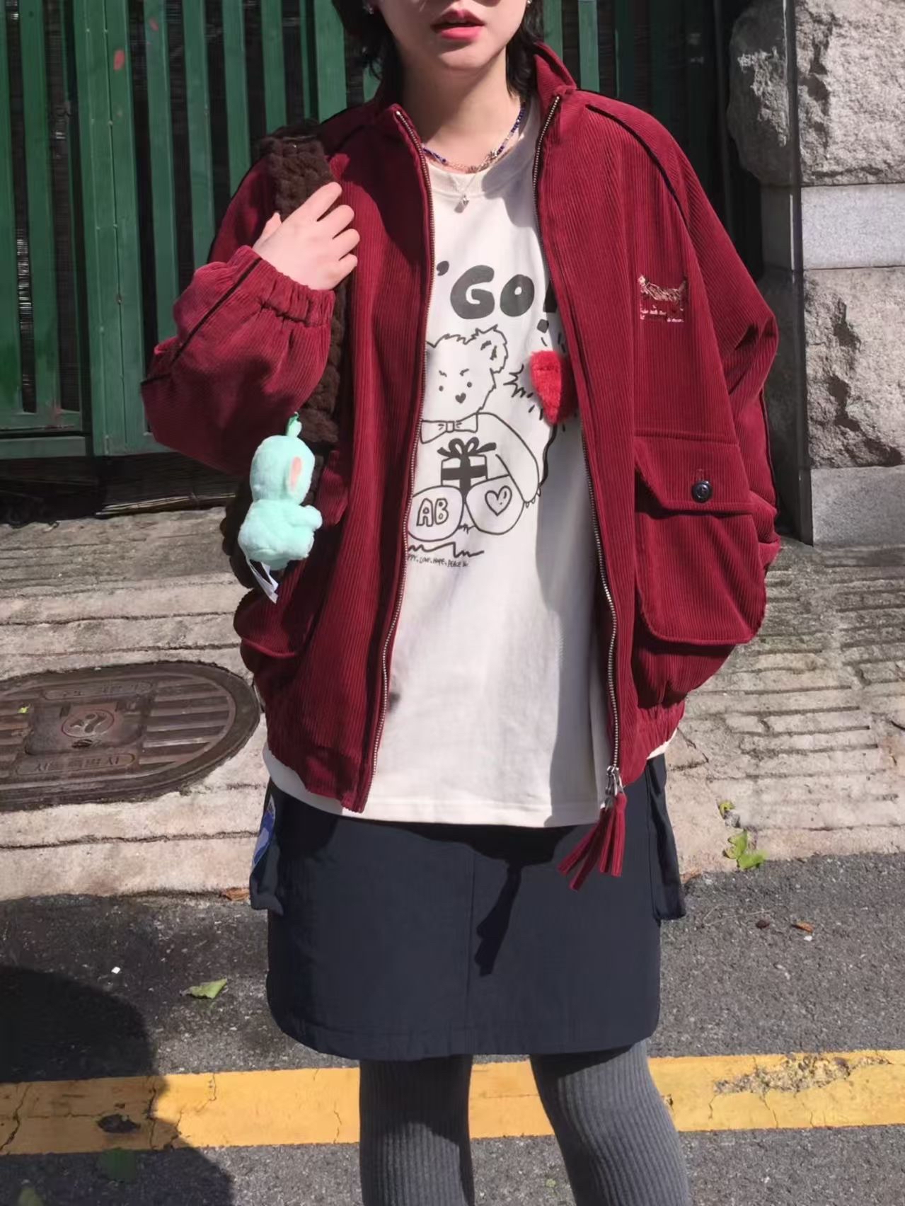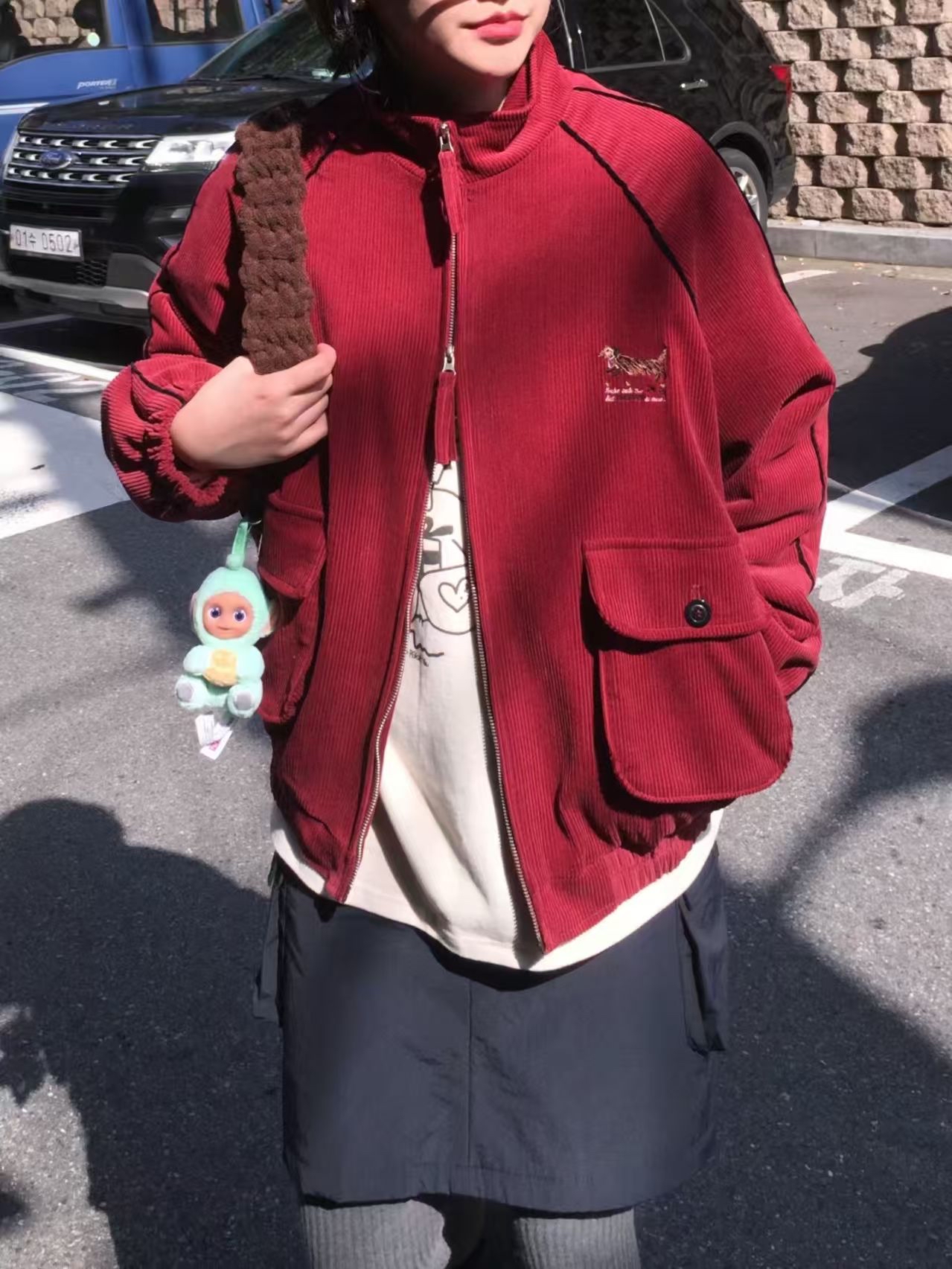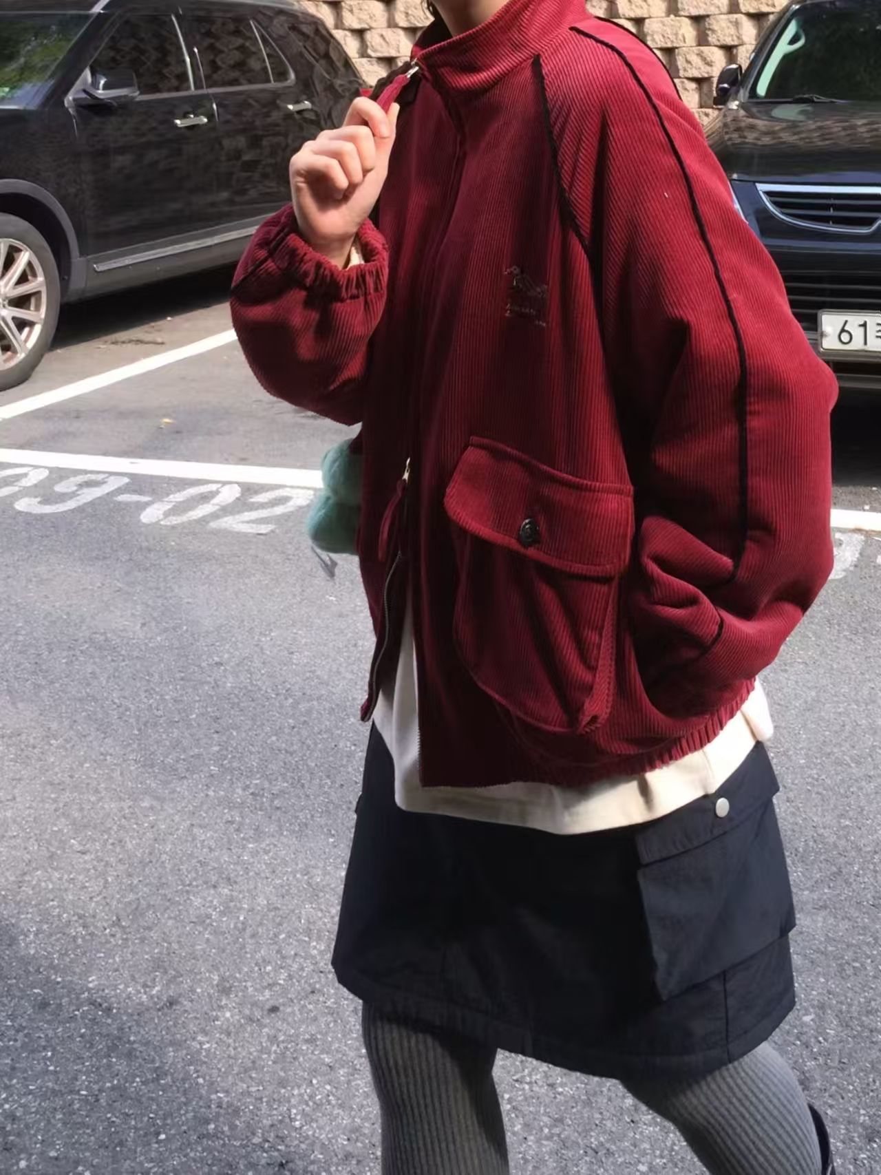 𝙺𝙹𝟶𝟷𝟶 棒球風直紋外套 兩色 𝙵𝚛𝚎𝚎 𝚂𝚒𝚣𝚎 🇰🇷 𝙼𝚊𝚍𝚎 𝚒𝚗 𝙺𝚘𝚛𝚎𝚊 ⚾ 棒球外套設計 - 休閒得嚟又有型 ✨ 直紋拼色 - 視覺效果即時瘦一個碼 🌟 燈芯絨