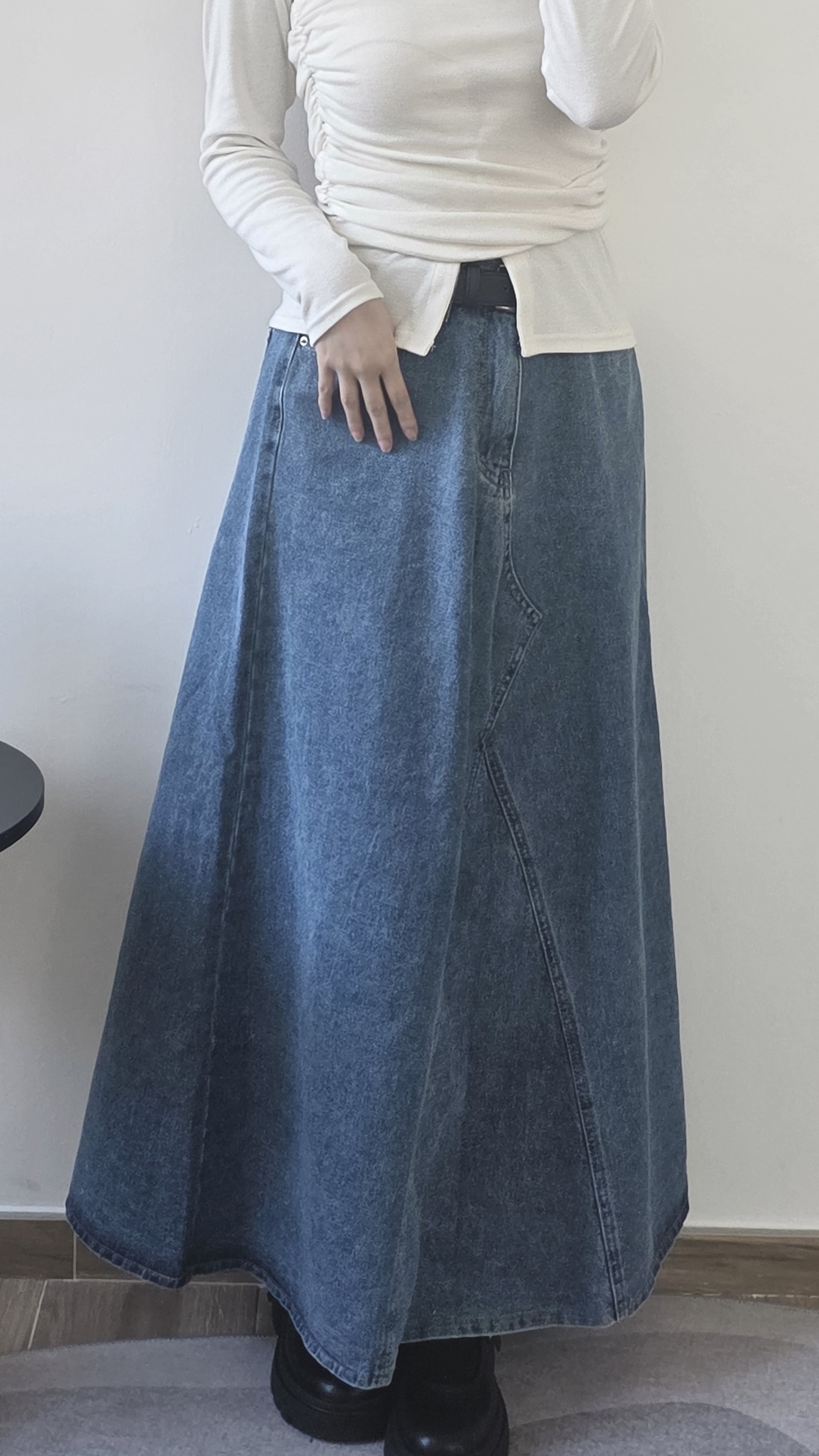 𝙺𝚂𝟶𝟷𝟶 牛仔A字長裙 兩色(𝚂𝚒𝚣𝚎 𝚂/𝙼/𝙻) 🇰🇷 𝙼𝚊𝚍𝚎 𝚒𝚗 𝙺𝚘𝚛𝚎𝚊 👗 高腰A字剪裁 - 修身顯瘦神設計 ✨ 挺牛仔面料 - 完美修飾臀腿線條 📏 長版型 - 視覺拉長腿部比例 ✔️ 均碼設計 - 腰圍彈性伸縮 ✔️ 四季皆可穿著 🚀 小個子也能駕馭的顯高神裙! 💁🏻‍♀️𝙼𝚘𝚍𝚎𝚕 𝚍𝚎𝚝𝚊𝚒𝚕𝚜 💙 𝟷𝟻𝟾𝚌𝚖 𝟺𝟿𝚔𝚐 🖤 𝟷𝟻𝟼𝚌𝚖 𝟺𝟸𝚔𝚐