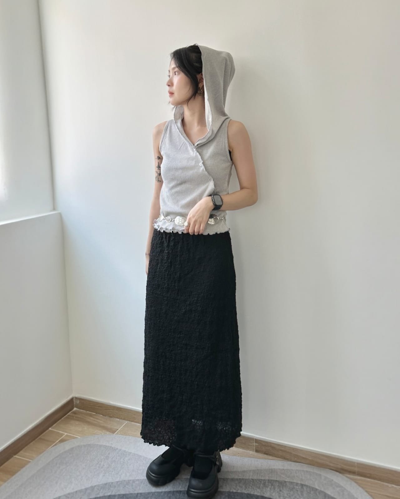𝙺𝚂𝟶𝟶𝟾 皺紋柔感長裙 兩色(𝙵𝚛𝚎𝚎 𝚂𝚒𝚣𝚎) 🇰🇷 𝙼𝚊𝚍𝚎 𝚒𝚗 𝙺𝚘𝚛𝚎𝚊 🌫️ 獨特皺褶紋理 立體壓皺 微透輕盈材質 走動間自帶飄逸感 💫 設計亮點 ✔️ 高腰鬆緊帶 - 包容各種身型 ✔️ 雙層設計 - 透膚卻不走光 💁🏻‍♀️𝙼𝚘𝚍𝚎𝚕 𝚍𝚎𝚝𝚊𝚒𝚕𝚜 🤍𝟷𝟻𝟾𝚌𝚖 𝟺𝟼𝚔𝚐 🖤𝟷𝟻𝟼𝚌𝚖 𝟺𝟸𝚔𝚐