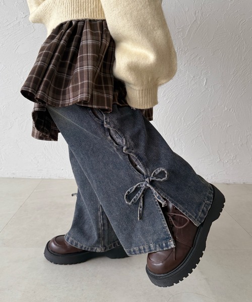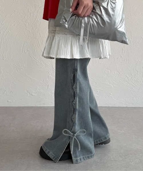 𝙹𝙿𝟶𝟶𝟺 蝴蝶結喇叭牛仔褲 𝟹 𝚌𝚘𝚕𝚘𝚛 (𝚂𝚒𝚣𝚎 𝙼 / 𝙻) 🇯🇵𝚙𝚛𝚘𝚍𝚞𝚌𝚝 𝚘𝚏 𝙹𝚊𝚙𝚊𝚗 微喇叭褲腳位玩咗個大膽嘅開叉設計 再綁上幾個精緻嘅蝴蝶結🎀 行起路嚟若隱若現,真係好吸睛✨ 好可愛 好有日系㗎妹feel 🧏🏻‍♀️ 高腰剪裁夠晒顯瘦顯高 配埋微喇叭褲腳 視覺效果一流! 想追潮流又唔想同人撞款,揀佢就無錯啦! 💁🏻‍♀️𝙼𝚘𝚍𝚎𝚕 𝚍𝚎𝚝𝚊𝚒𝚕𝚜 𝟷𝟻𝟻𝚌𝚖 ( 𝙼 𝚜𝚒𝚣𝚎 ) 褲款尺寸: 𝚂𝚒𝚣𝚎 𝙼 腰圍 𝟼𝟼 臀圍 𝟷𝟶𝟷 褲長 𝟿𝟾.𝟻 𝚂𝚒𝚣𝚎 𝙻 腰圍 𝟽𝟶 臀圍 𝟷𝟶𝟻 褲長 𝟷𝟶𝟶.𝟻