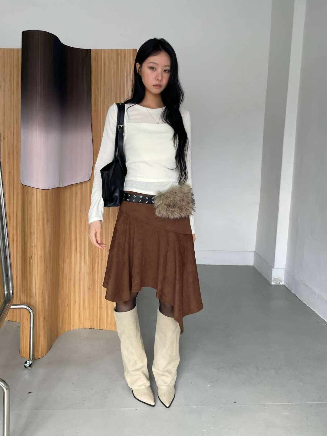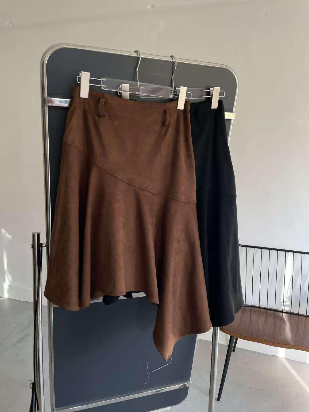 KS013麂皮中長裙 𝟸 𝚌𝚘𝚕𝚘𝚛 (𝚂𝚒𝚣𝚎 𝚂 / 𝙼 ) 🇰🇷 𝙼𝚊𝚍𝚎 𝚒𝚗 𝙺𝚘𝚛𝚎𝚊 秋冬美式學院風(Preppy style) 材質同剪裁都好有心思㗎~ · 麂皮絨質感: 採用麂皮絨面料 手感柔軟高級 秋冬著暖笠笠又顯質感 · 不規則下襬: 裙腳弧形不對稱設計,線條流暢有層次 比起普通短裙更顯腿瘦同設計感! · 高腰A字剪裁: 高腰拉長下身比例,A字版型輕鬆修飾臀部同大腿,顯瘦效果滿分~ · 細節配搭: 襯上鉚釘腰帶同毛毛腰包 即刻提升Y2K辣妹味 配長靴或過膝襪,型格又吸睛! 上身可以襯修身毛衣、淨色Tee 或者好似模特兒咁配件毛毛領Polo衫 一啲甜美+一啲型格👢 輕鬆穿出又甜又辣嘅秋冬造型🍂
